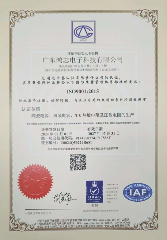廣東鴻志質(zhì)量體系證書(shū)