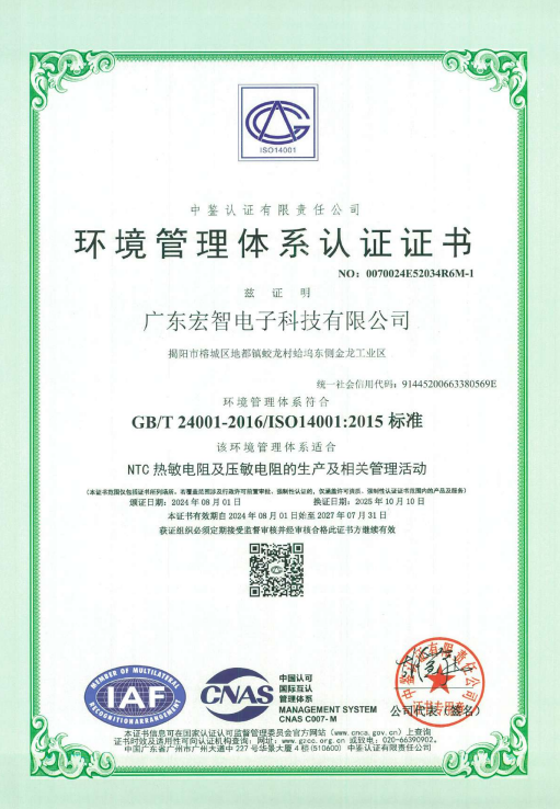廣東宏智環(huán)境體系證書(shū)