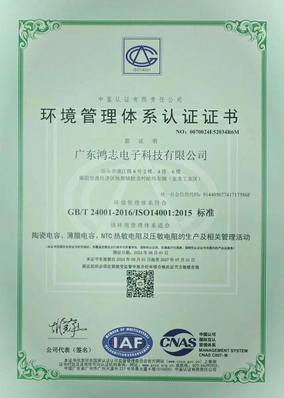 廣東鴻志環(huán)境體系證書(shū)