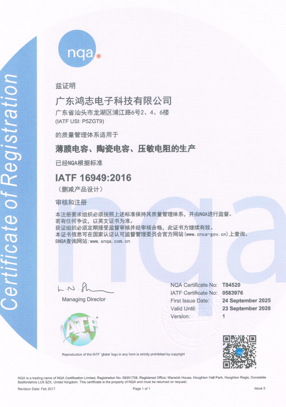 陶瓷電容Y2-CQC證書(shū)