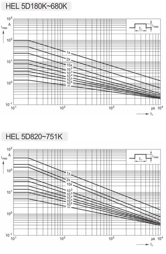 備注:上表KH超強(qiáng)型“電壓沖擊”40次僅適用于壓敏電壓430V及其以上規(guī)格的產(chǎn)品。